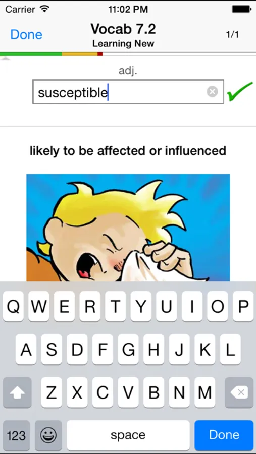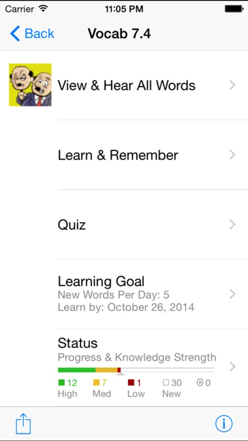 - Spaced Repetition: A scientifically proven method for optimal memory retention. The app keeps track of how well you've learned a word, and presents challenging words more frequently than others. It even suggests a time when you should drill again before you forget the words.