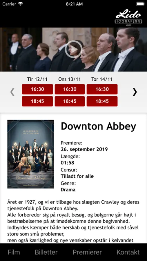 Med denne app har du mulighed for at gennemse programmet for Lido Biograferne samt se yderligere filminformationer som trailer, censur, medvirkende skuespillere, varighed m.m.