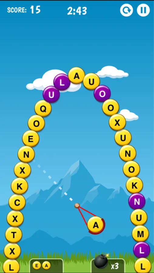 Shoot letters from your sling shot to make words and score points! Score enough points to move on to the next level. Use bombs to destroy any unwanted letters that get in your way. Combine letters with score multipliers to double or triple your score, then compete with your friends for the highest score. You'll need to use your brain to find words, and your hand to shoot the target!