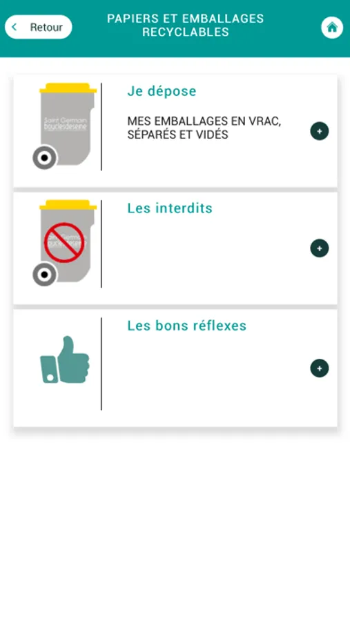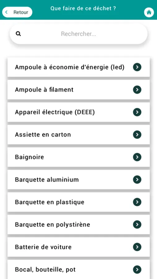 L'application BOUCLE_TRI comporte aussi un petit guide interactif sur les consignes du tri. En cas de doute, vous pourrez vérifier le flux correspondant à un déchet.