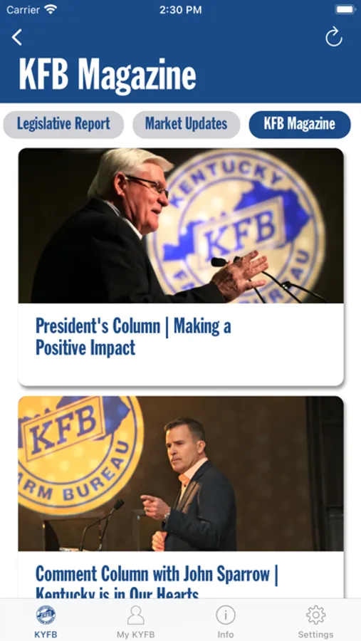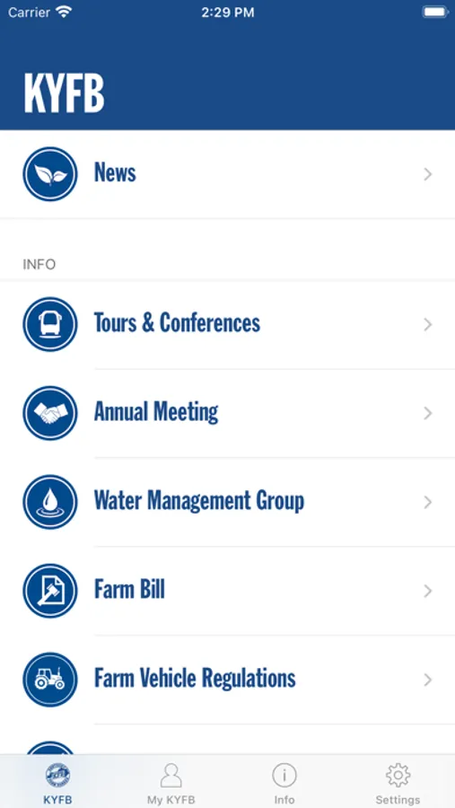 The Kentucky Farm Bureau app gets you connected with your farm community! It provides up to date news feeds and market updates relevant to you and your community, lets you access your KFB account information and pay your bill, get member benefit information, and much more.