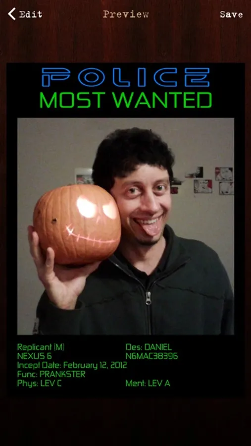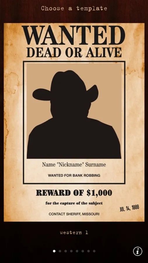 Pick up one of the 11 included templates, take a photo or get one from your library, put in some funny captions and you have a gorgeous new wanted poster to print and share with your friends for fun!