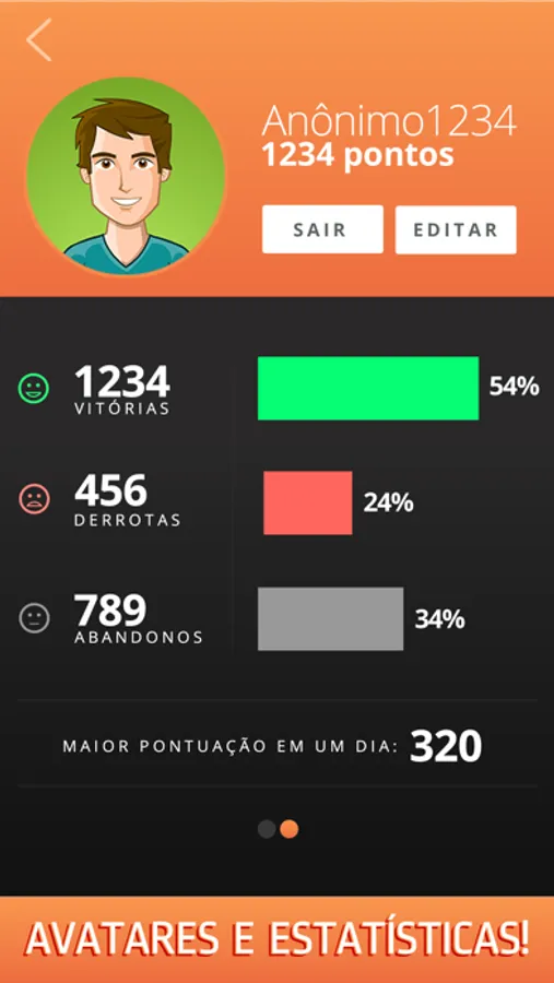 - 30 avatares diferentes para você escolher o que mais combina com você