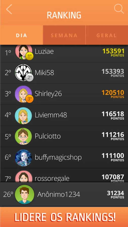 - Rankings diário, mensal e geral destaque-se e tire onda os amigos!