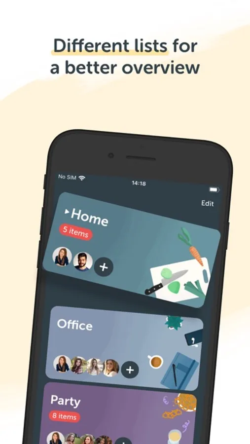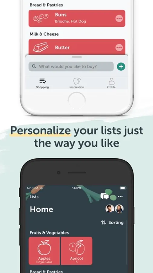 - Organize your shopping lists in the compact tile view or in the list view with more space for your own item details.