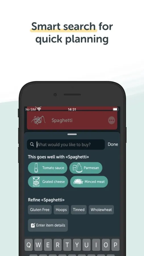 - Get matching suggestions for the items on your shopping list. Need to buy spaghetti? Don't forget the tomato sauce!