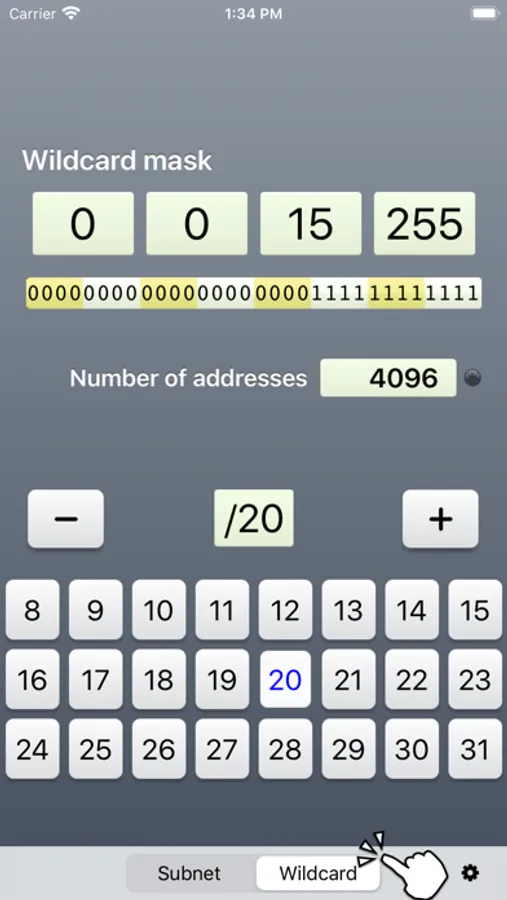 This App can be mutated to the keypad for wildcard mask. It shows wild card mask and number of addresses.