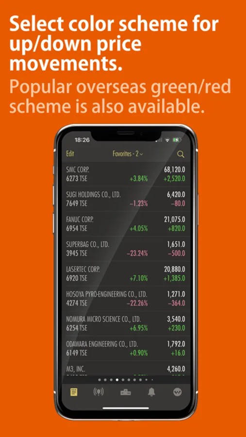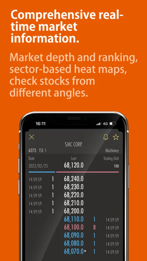 Push notification based price alerts, ranking displays, market sectors heat bars, companies’ financial figures, etc.