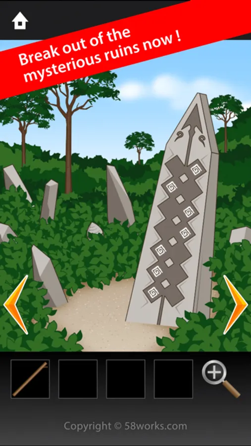 Explore the site to get items. Solve the hidden mysteries and escape from the ruins squeezing your brain.