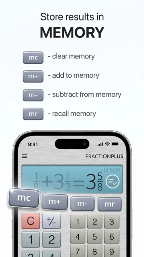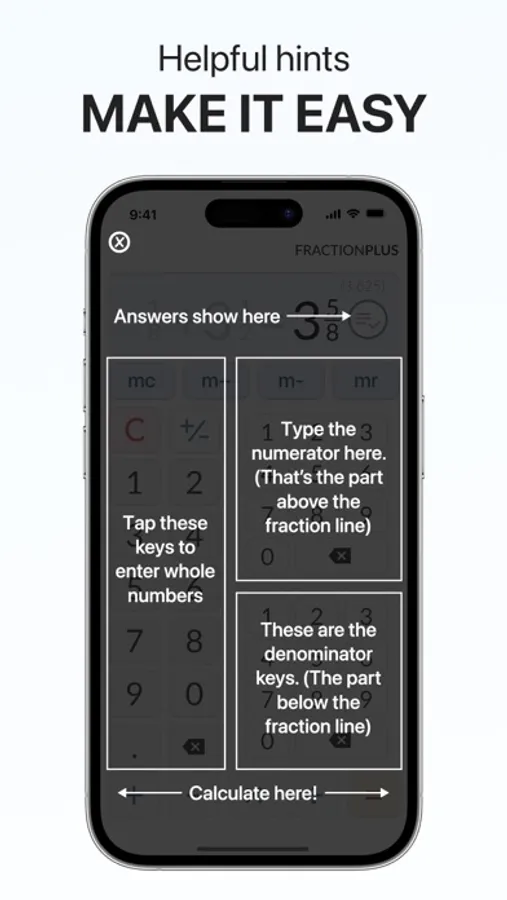 It's an easy-to-use fraction calculator with a large display and big buttons.