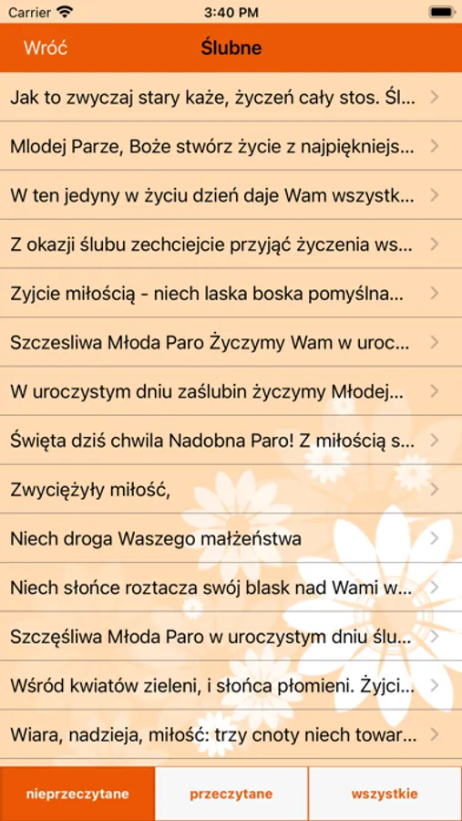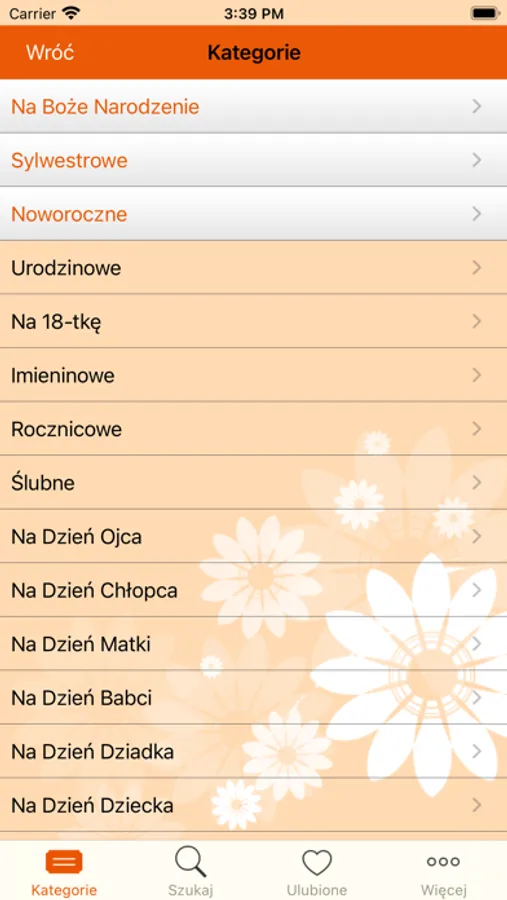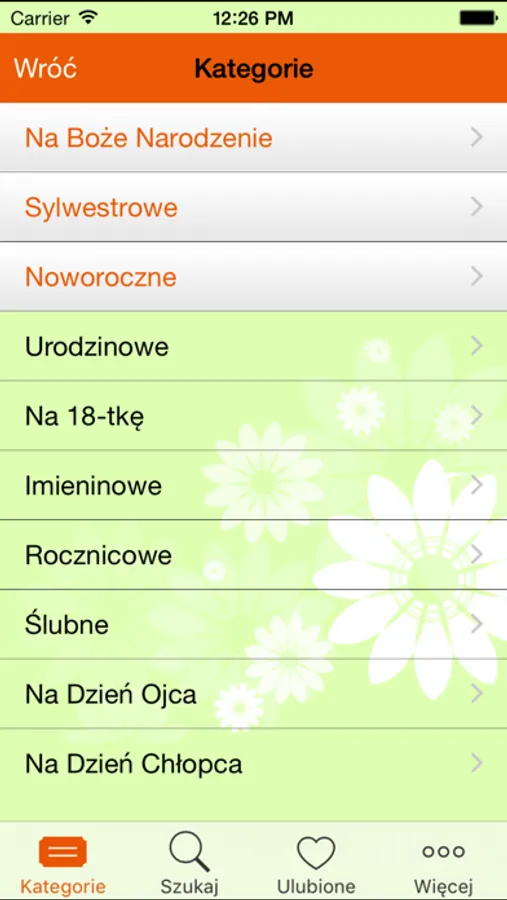 W aplikacji znajdują się życzenia z kategorii:
