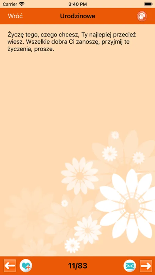 Teraz, gdy tylko potrzebujesz, w aplikacji znajdziesz setki gotowych życzeń na różne okazje, które możesz wysyłać do znajomych lub rodziny za pomocą SMSa lub e-maila. Dzięki naszej aplikacji zrobisz to wyjątkowo szybko i sprawnie.