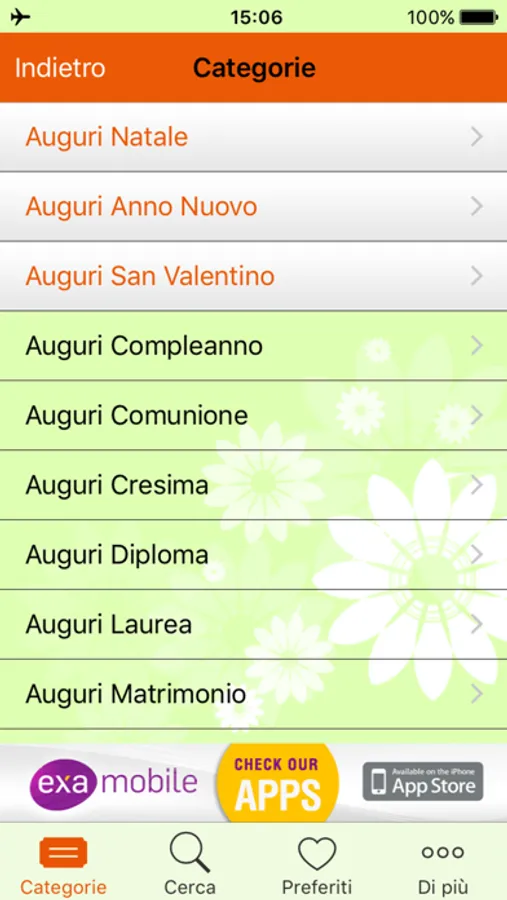 Gli auguri sono suddivisi in diverese categorie come: natale, capodanno, san valentino, compleanno, laurea, matrimonio, battesimo, pasqua, nasicta, festa dei nonni, auguri per la festa della mamma e tanti altri.