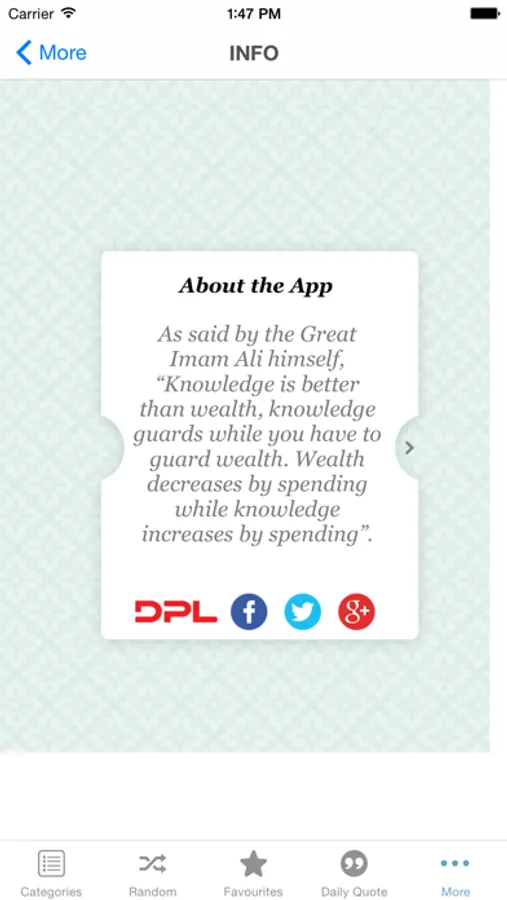 We hope this application increases upon your knowledge and it becomes a useful part of your daily routine. The app provides a beautifully designed layout and easy to navigate menu for quick access to all the quotes.