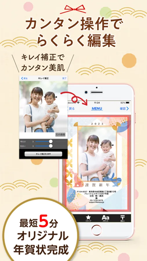 You can make a New Year's card with beautiful photos taken iPhone.