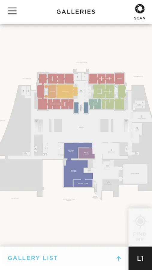 · Map: Galleries are color-coded and grouped thematically to facilitate easier navigation. Tap any gallery number to see a gallery description and all artworks in that gallery.