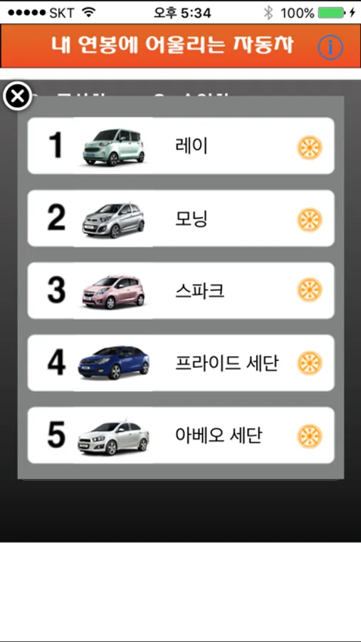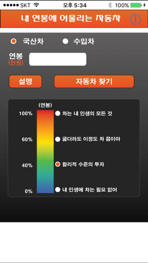 이 어플은 내 연봉에서 적정 수준의 차량의 순위를 책정하는 어플이다.
