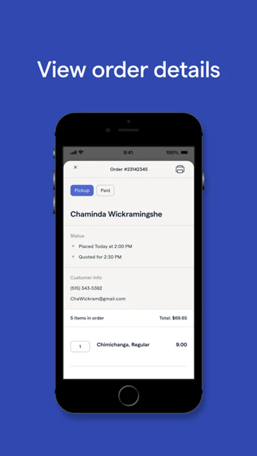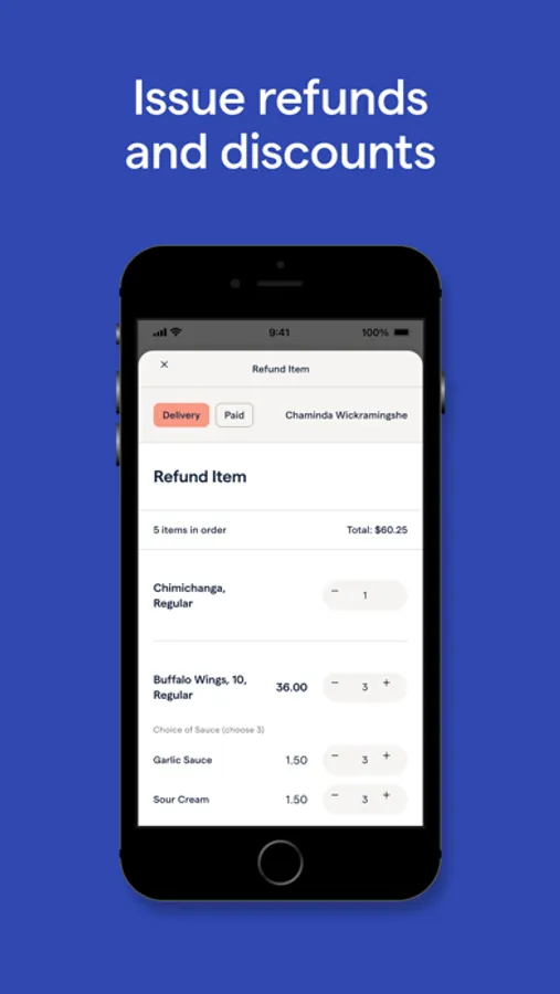 Easily accept orders with a single tap, cancel orders, issue refunds and mark items out of stock.