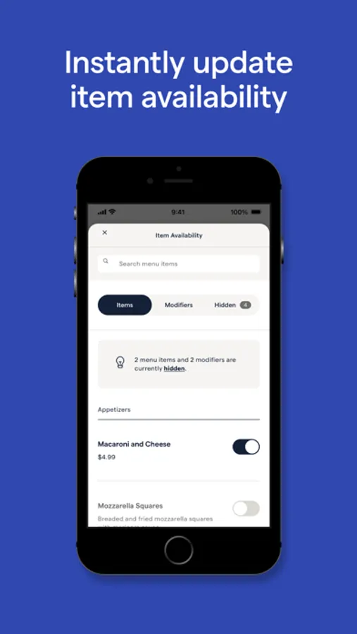 MANAGE YOUR ORDERS AND MENU ITEM AVAILABILITY