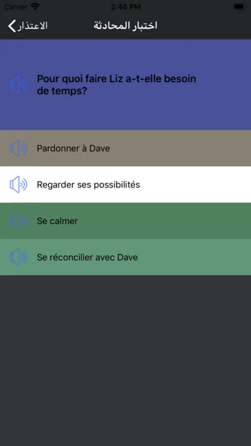 - كل محادثة لها كلماتها المفتاحية وكذلك يوجد 3 اختبارات لكل محادثة