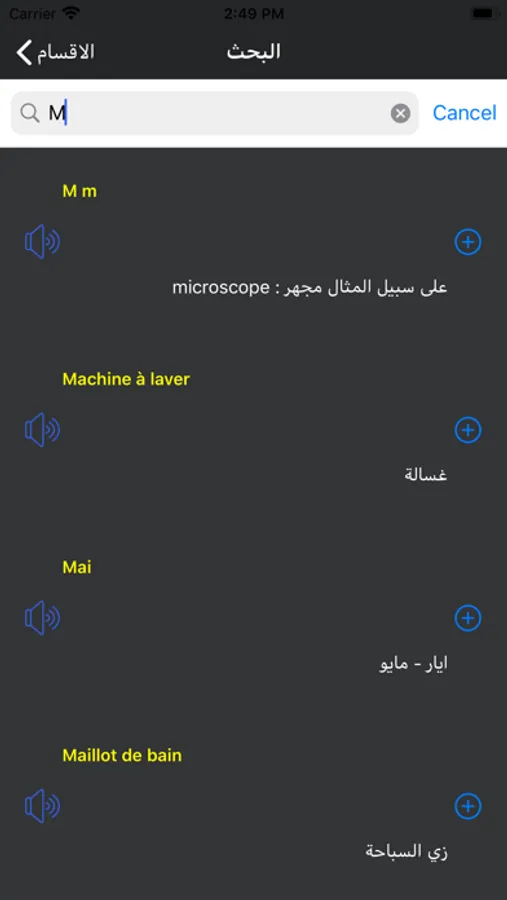- امكانية البحث السريع لمفردات البرنامج باللغة العربية او الفرنسية ونتائج البحث مدعومة بالصوت والترجمة