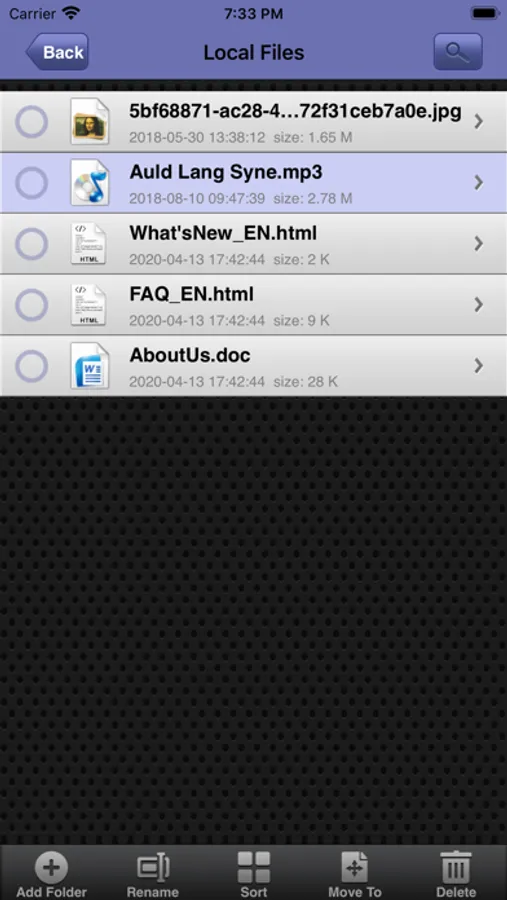 - Manage local files including Rename, Delete, Sort, Move and Add Folders.