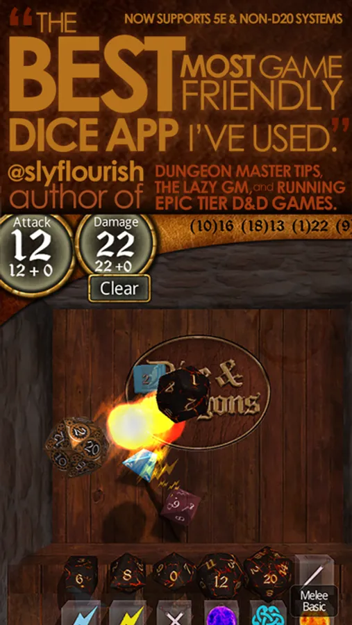 A dice roller app for tabletop roleplaying games that keeps the fun of tossing physical dice without all that pesky math and adds a few tricks of its own.