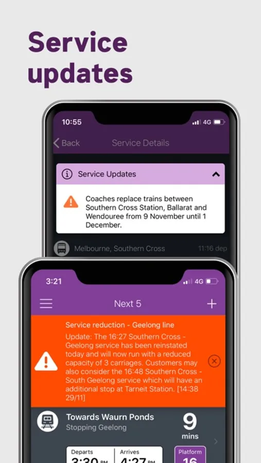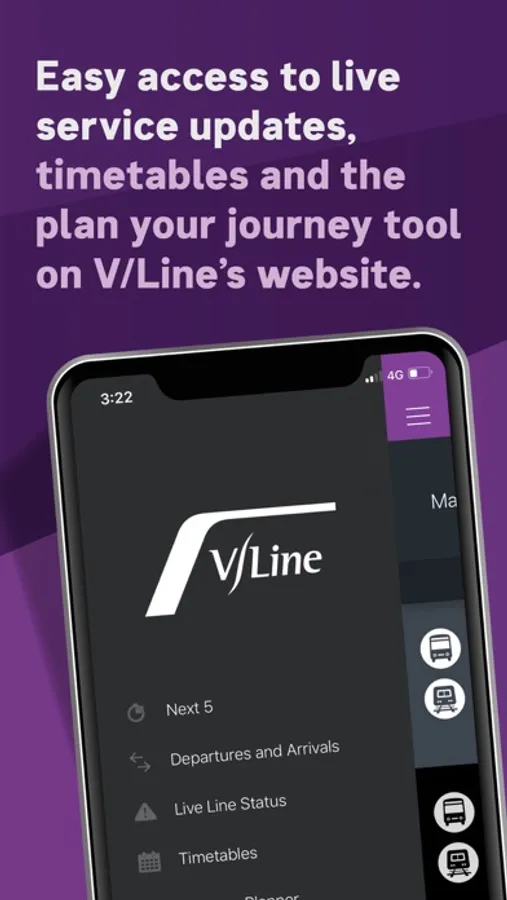 • Easily access live service updates, timetables and the plan your journey tool on V/Line’s website.