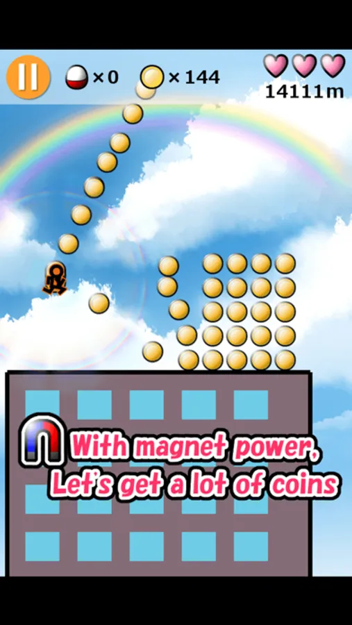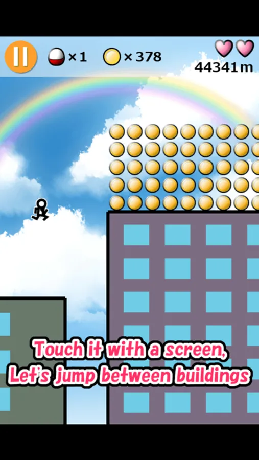 * Go for the distance to jump over the roof of the building!