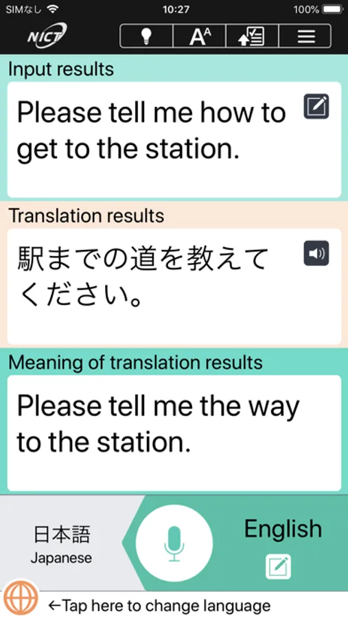While VoiceTra can be used as a dictionary to look up words, it is recommended to input sentences as it interprets the meaning from the context to output the translation results.