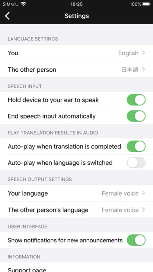 The translation direction can be instantly switched, allowing 2 people that speak different languages to communicate using a single device.