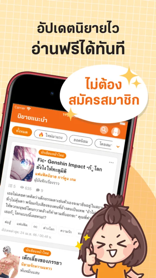 Online fiction archive, including Thai, translated and Chinese novels, more than 2,000,000 stories. There are many appealing novels from various genres, historical, fantasy, Yaoi/Boy Love, Yuri/Girl Love, romance, fanfiction, etc.