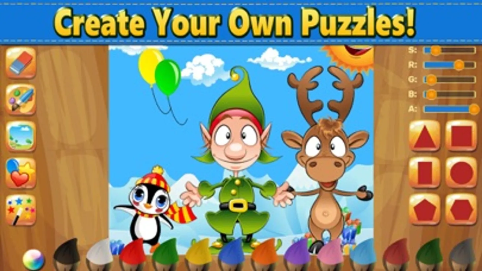 * Create your own paintings, puzzles, stories and mazes