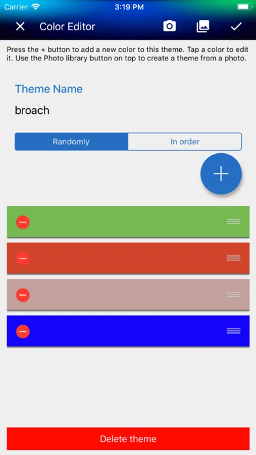 - Transform any image from your library or Camera in a color theme.