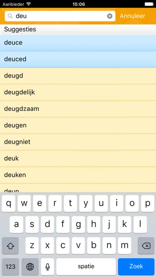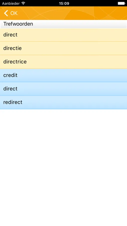 •Terwijl je het zoekwoord typt, draait de trefwoordenlijst mee: tik het woord aan zodra je het ziet.
