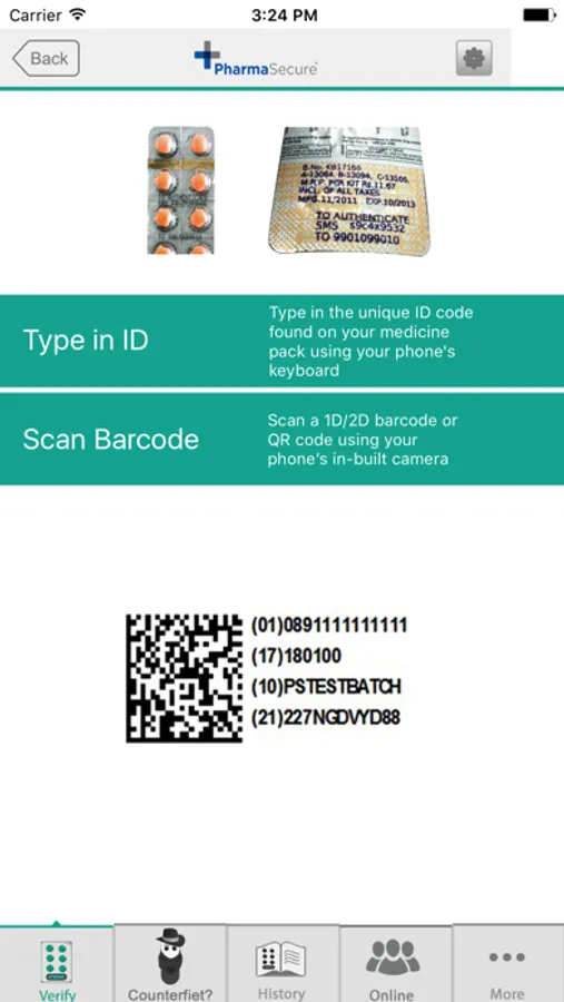 All you have to do it look for the text “To authenticate SMS "CODE" to "NUMBER” text on your pack of medicine. Then open the psVerify™ mobile app and select Verify Medicine box and text in the code from the pack and press submit. Within a matter of seconds you will receive quality information about your medicine. psVerify™ mobile app will use your 3G or Wifi (when available) connection to authenticate your medicine.