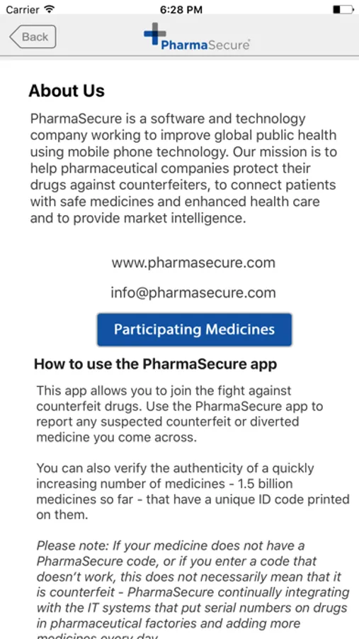 DID YOU KNOW that you and your loved ones may be victims of fake medicines? Take control with PharmaSecure’s psVerify™ mobile app, that allows you to verify which medicine is genuine. Services currently available for select medications manufactured in India and Nigeria. For a full list of PharmaSecure coded medicines visit: verify.pharmasecure.com or look in the information page of the app.