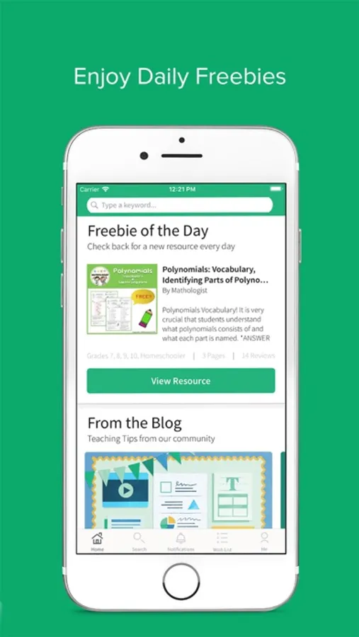 The TPT iOS App is the best way to access all that TPT has to offer on the go, allowing you to find resources when YOU need them. In addition, the app also includes a Freebie of the Day, a Daily Dose of Inspiration, Trending Search Terms, and Teaching Ideas from other teachers around the world.