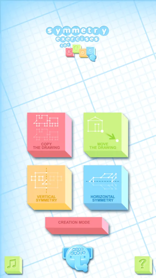 While playing copying the templates, your children will exercise their observation and their logical skills with the game modes "copy", "move" and "symmetries", with 2 levels of difficulty (only one iPhone).