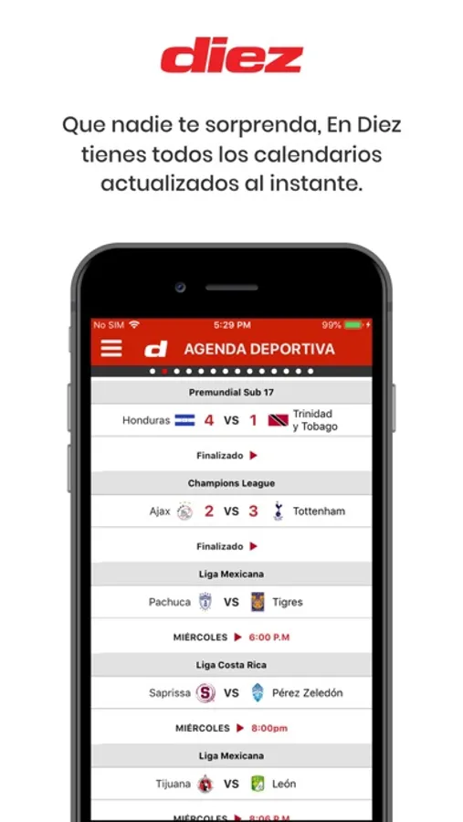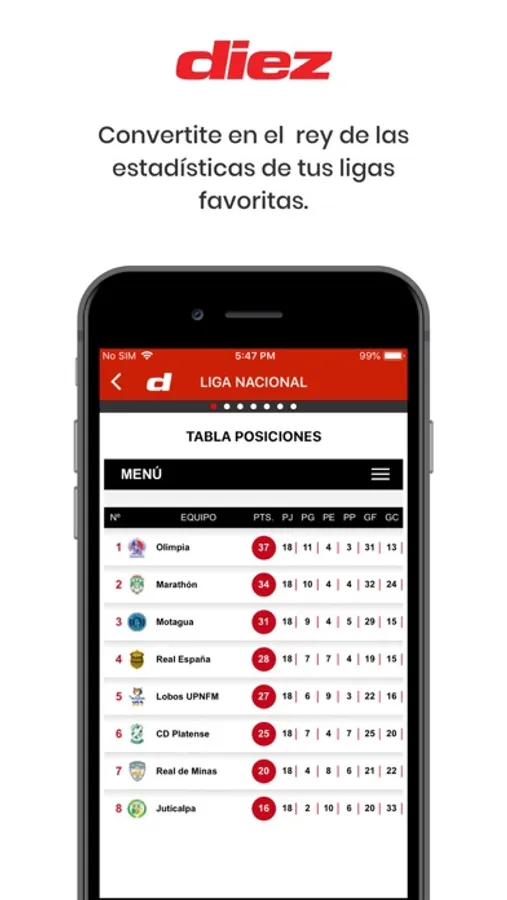 ¡Que nadie esté más enterado de los deportes que tú! Descarga la nueva app de Diario Diez y sé el primero en darte cuenta de las noticias de la Liga Nacional, Selección de Honduras, legionarios, fútbol internacional, todos los resultados de tu equipo favorito al instante y mucho más.