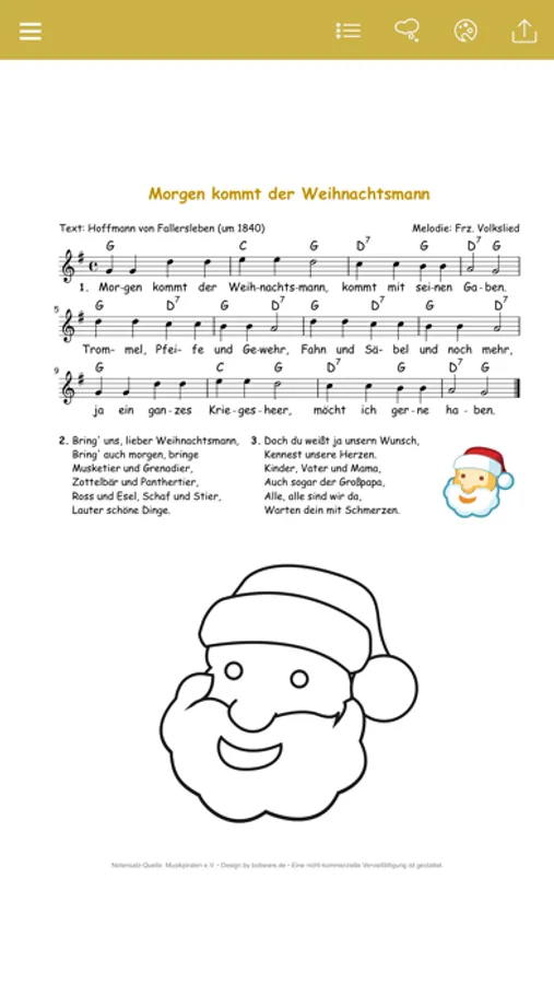 The musical notes and texts are taken from the public domain song book "Singing in Advent" of the Musikpiraten e.V., which addresses especially to educational institutions, to enable a free and legal copy.