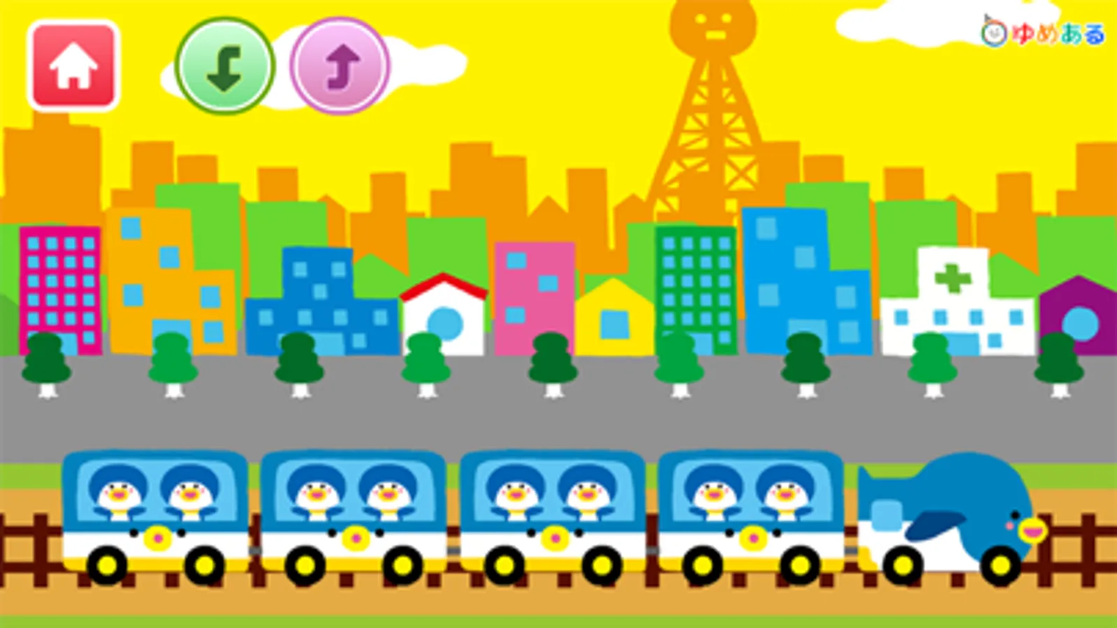 汽車のアニメーションも収録されています。(線路は続くよどこまでも)