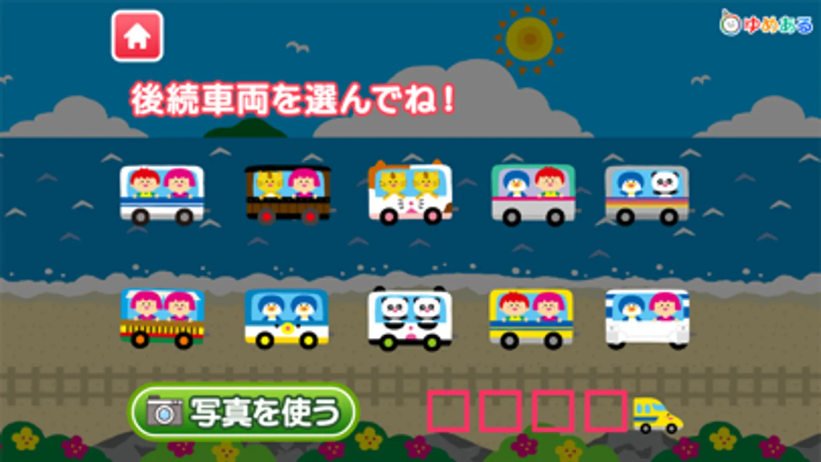 先頭車両と後続車両(4両)を順番に選択して走らせるアプリです。