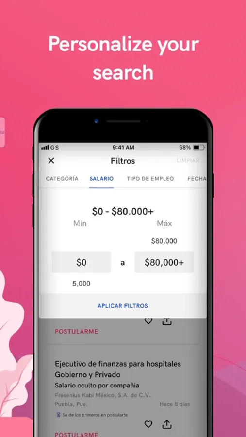 Between the different job advertisements, look for the ideal vacancy, you can filter by position, area, company, city or state