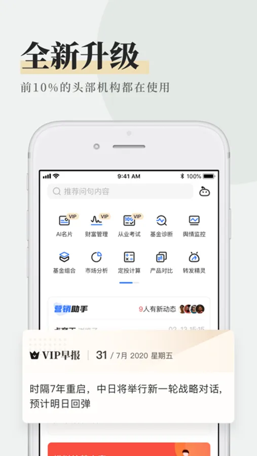 我们专注服务理财师,提供“营销获客、理财分析、智能服务”等核心功能,实现与iFinD终端云端互通的安全理财工具,帮助理财师提高效率提升服务。