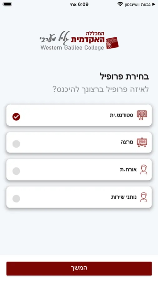 אפליקציה לסטודנטים ולמרצים של מכללת מכללת גליל מערבי כאן תוכלו למצוא מידע אישי על מערכת שעות, ציונים, לוח בחינות וכו'.