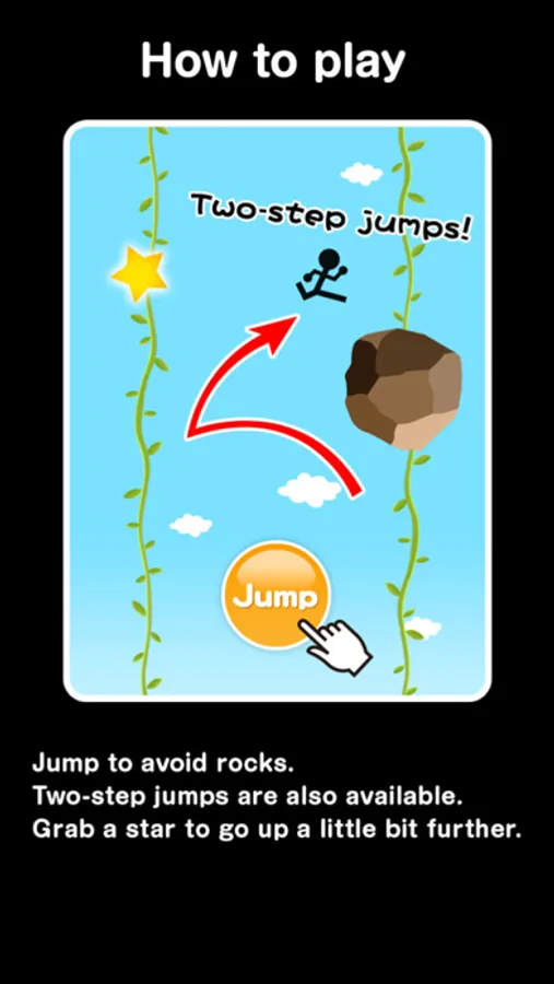 Avoid rocks that fall from the sky by jumping, and climb the trees as high as you can!