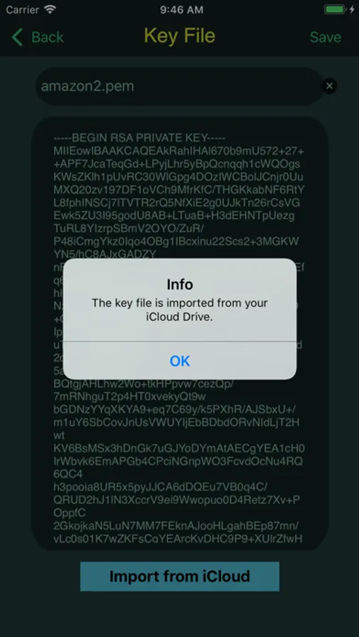 -- Support importing key files from and exporting key files to your iCloud Drive. You now can easily import a key file from your iCloud Drive by copying your key file to your iCloud Drive under /iterminal/key folder.