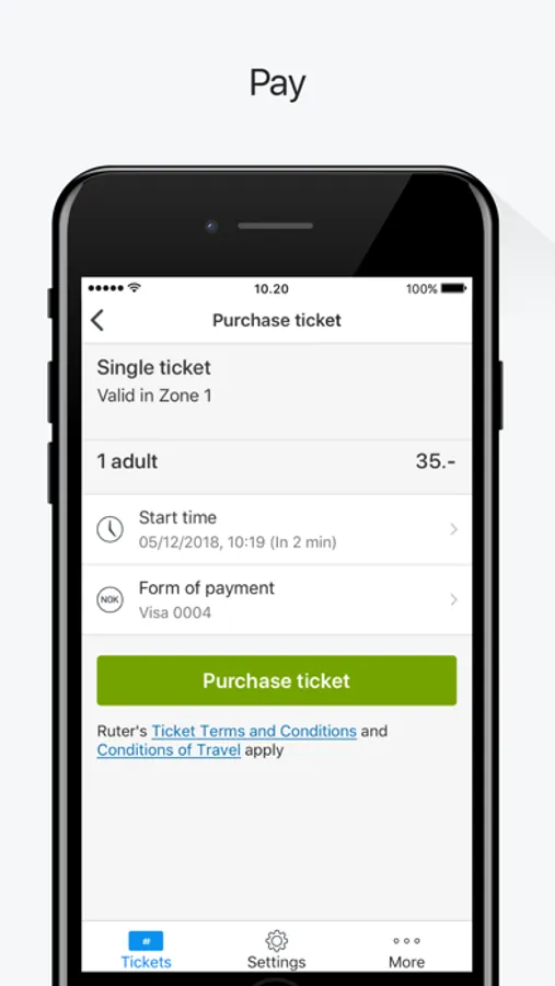 Ruter’s mobile app lets you buy your ticket before you get on board. The ticket is valid on the Metro, buses, trams, ferries and trains in Oslo and Akershus.