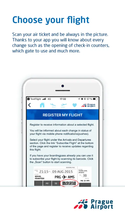 Scan the boarding pass barcode and register to receive information about your flight or the flight of your loved ones arriving at the airport. Thanks to mobile notifications, you will always have the selected flight’s data handy.